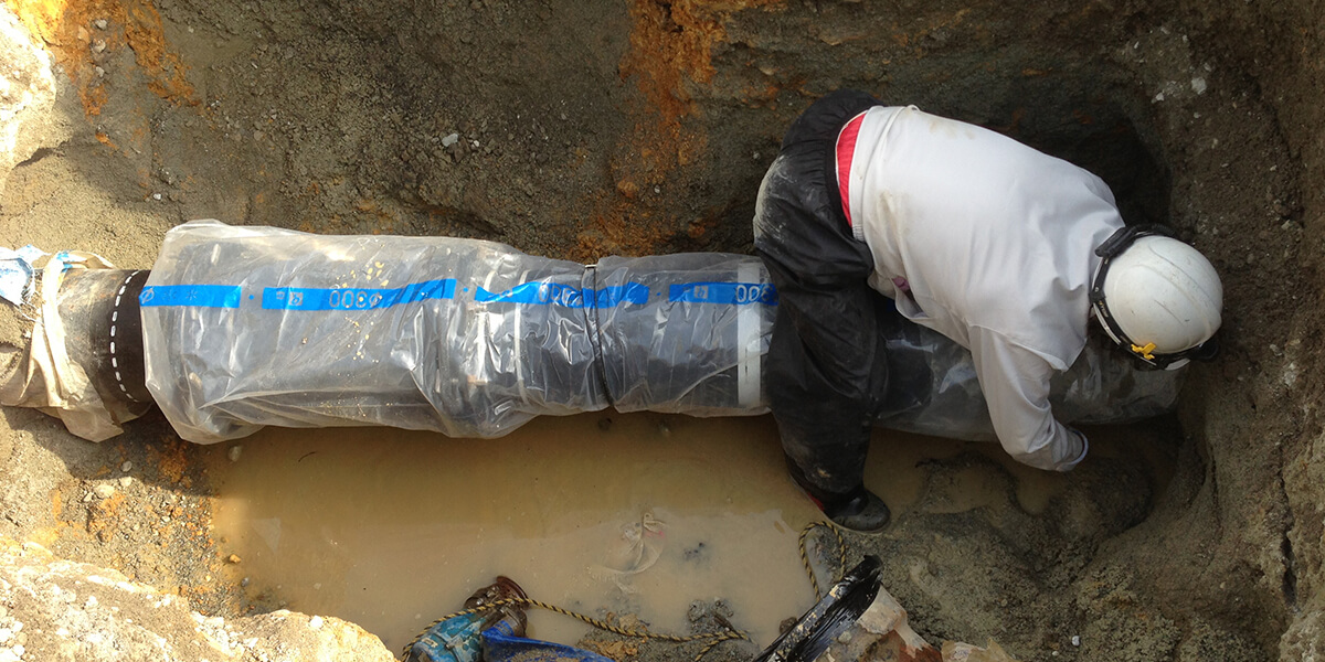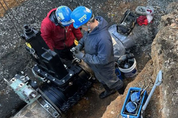 不断水分岐φ250と不断水仕切弁φ250の施工の様子です。
