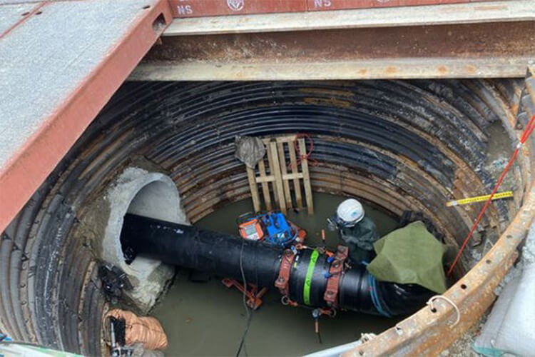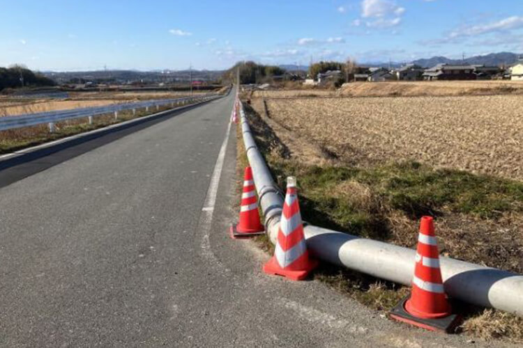 国道バイパスのサヤ管の中にWEET管を通す工事です。